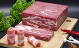 精選羔羊后腱,按西餐工藝加工而成。脂肪含量較少,肉質鮮美,咬勁十足,烤制后口味純正,適合醬鹵和西餐煎烤。
